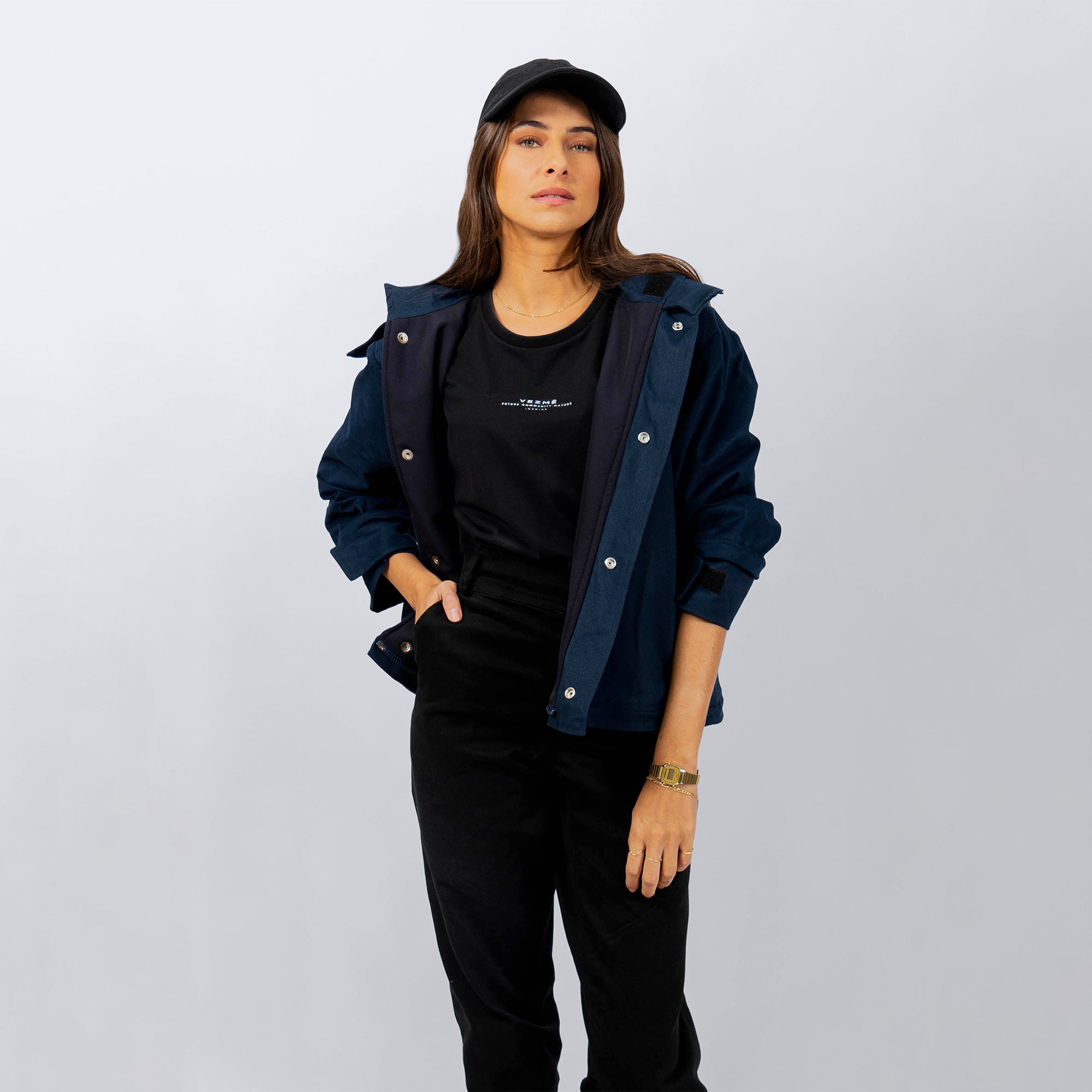 Chamarra Cropped x Trench Coat Azul Marino Gabardina OCEAN 3x YoSoyMatt