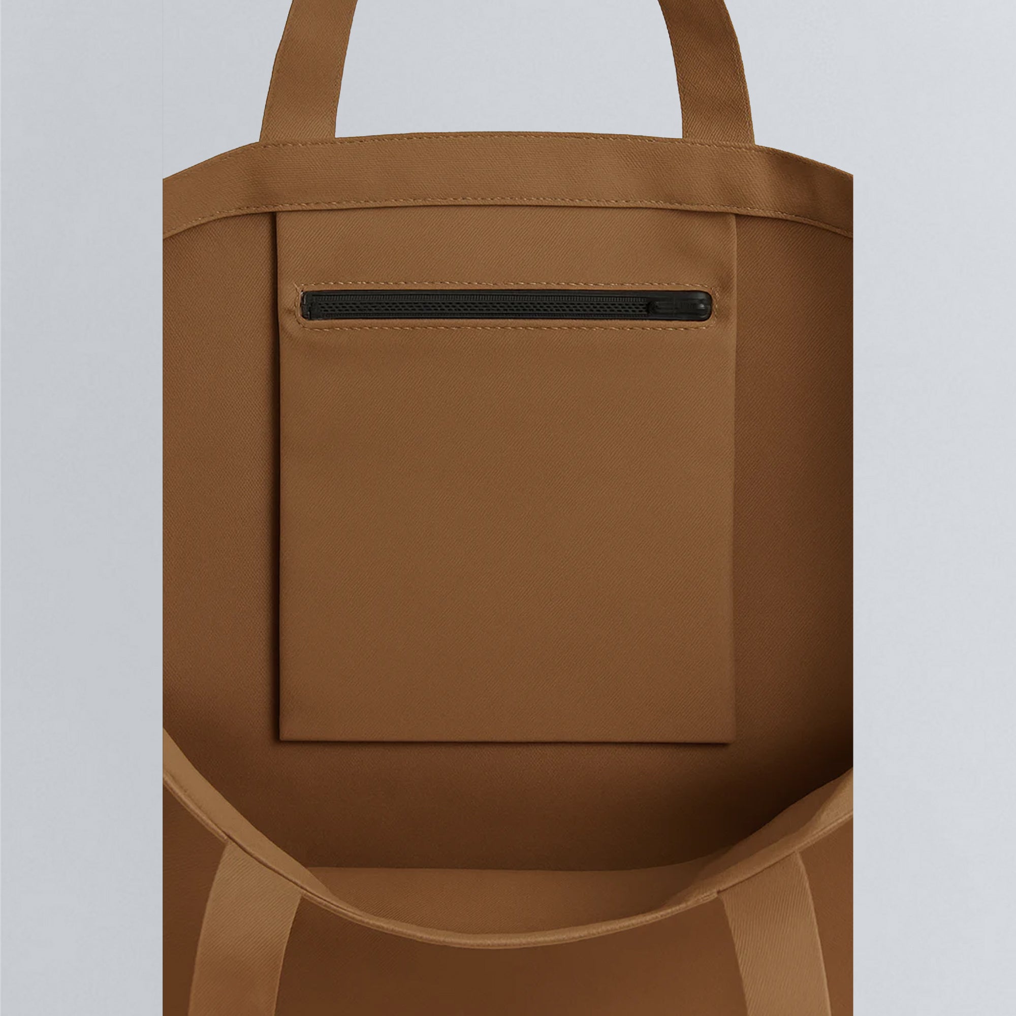 -Descripción: La Bolsa Tote Bag Grande Camel fue construida para combinar estilo y comodidad, ya que tiene un cierre de ziper interno y su diseño fue construido para tener mucho espacio de modo funcional. Tela de algodón sustentable con certificación OEKO-TEX® Standard 100, BCI, ISO 9001 e ISO 14001 .