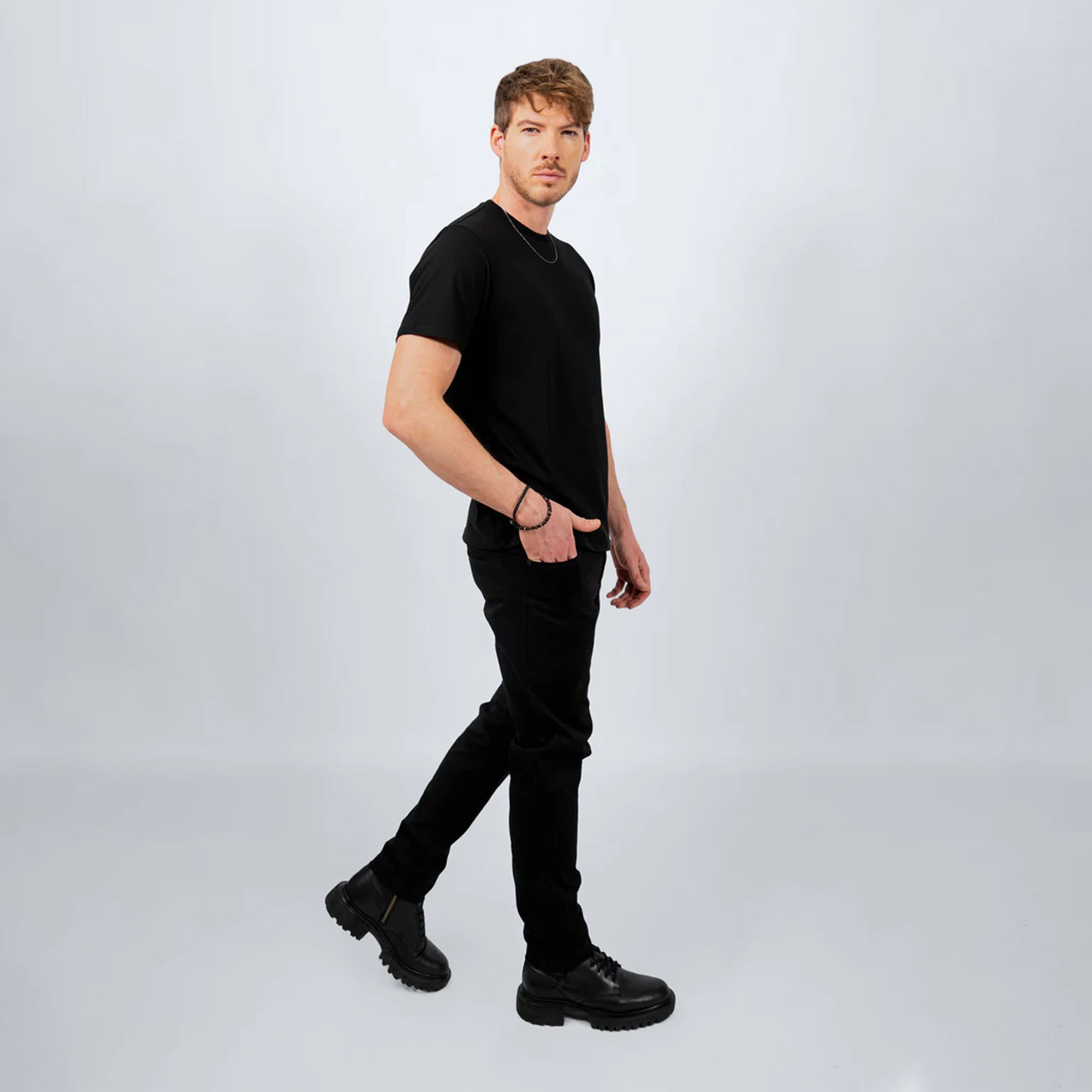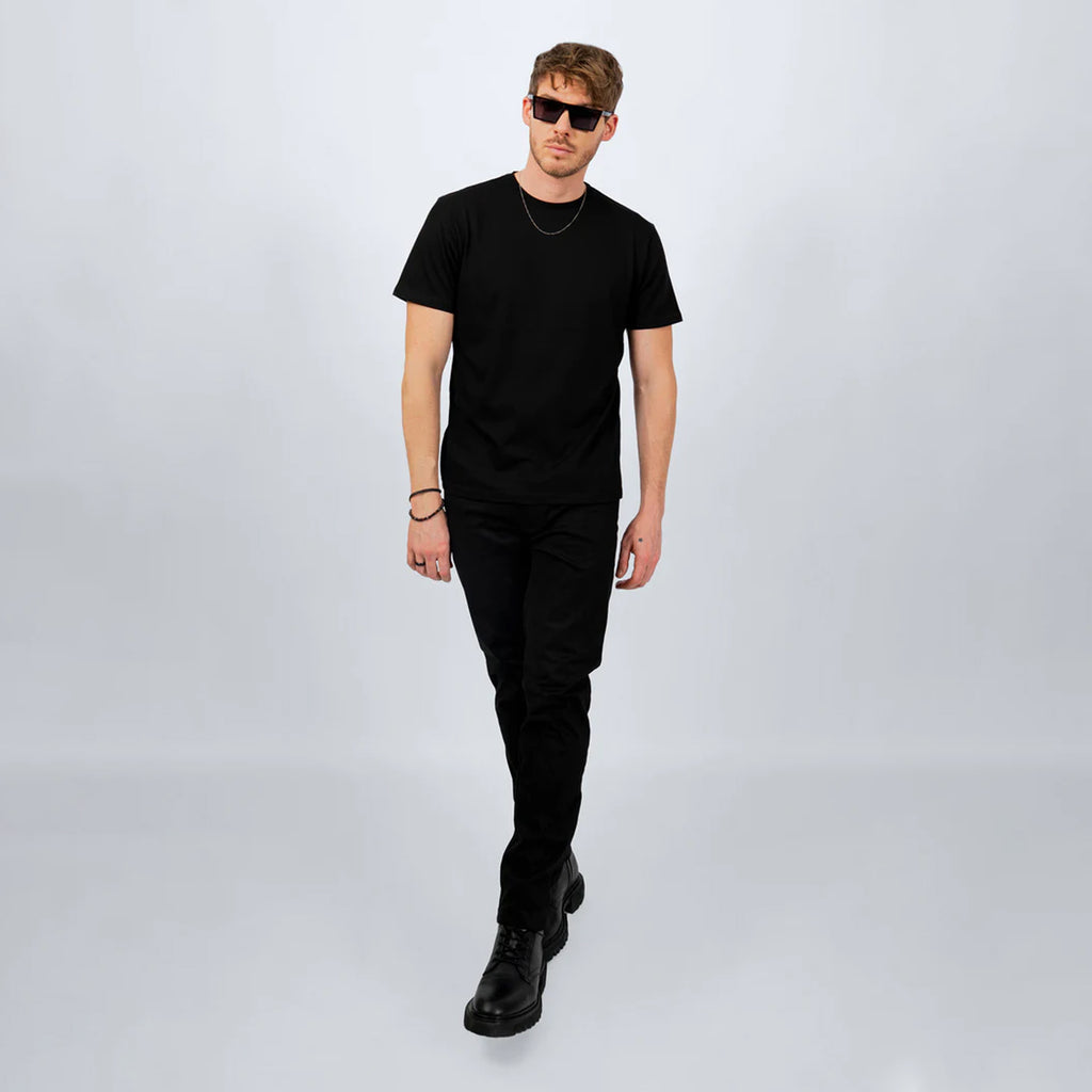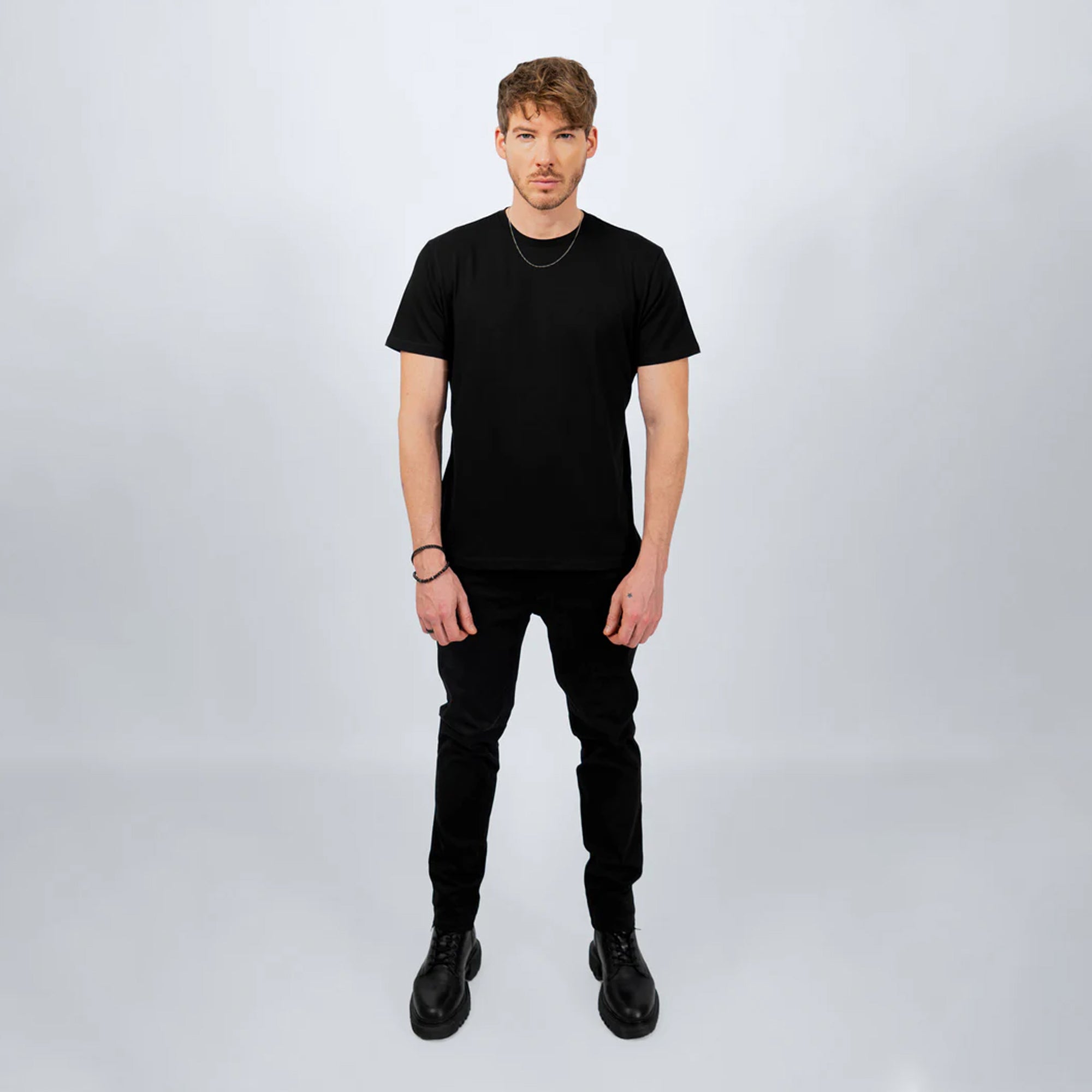 -Descripción: Playera Premium Negra con tejido suave y elástico que se adapta al cuerpo de forma modular. Elegimos un tejido con alto contenido de poliéster reciclado porque resiste mejor el paso del tiempo: mantiene su forma, color y suavidad incluso después de múltiples lavadas. Esta playera es ideal para quienes buscan una prenda híbrida que puedas usar tanto en un evento casual como en una clase de yoga, sin perder elegancia. Además, contiene una alta proporción de algodón de calidad, lo que la hace aún más cómoda al contacto con la piel. Certificación Global Recyled Standard (GRS) que ayuda a reducir la huella de carbono y los residuos.