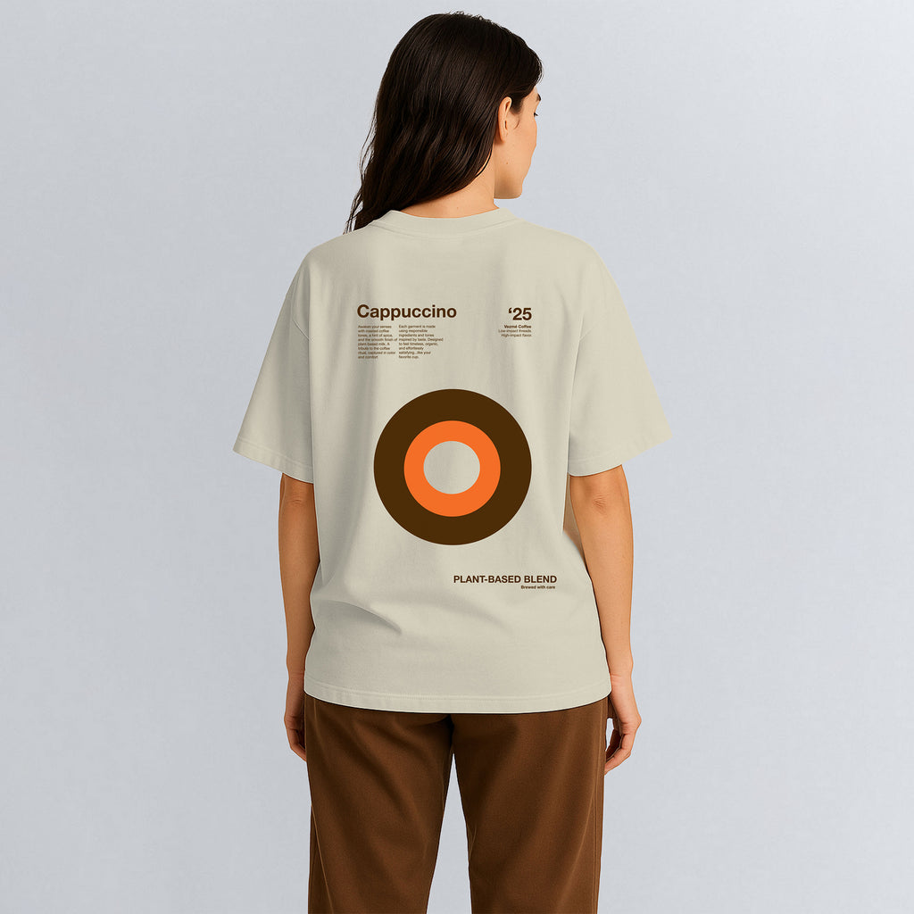 -Descripción: La playera Off-White oversized Cappuccino que trae el aesthetic para tu closet, dejando a ti con un aire fresh y moderno. Confeccionada en algodón premium y poliéster reciclado. Con una tela gruesa te ayuda a mantener la forma de la playera sin perder tu estilo. Esta tela de alta calidad ahorra huella de carbono y recursos, con certificado de tela sostenible Recycled yarn | GRS.