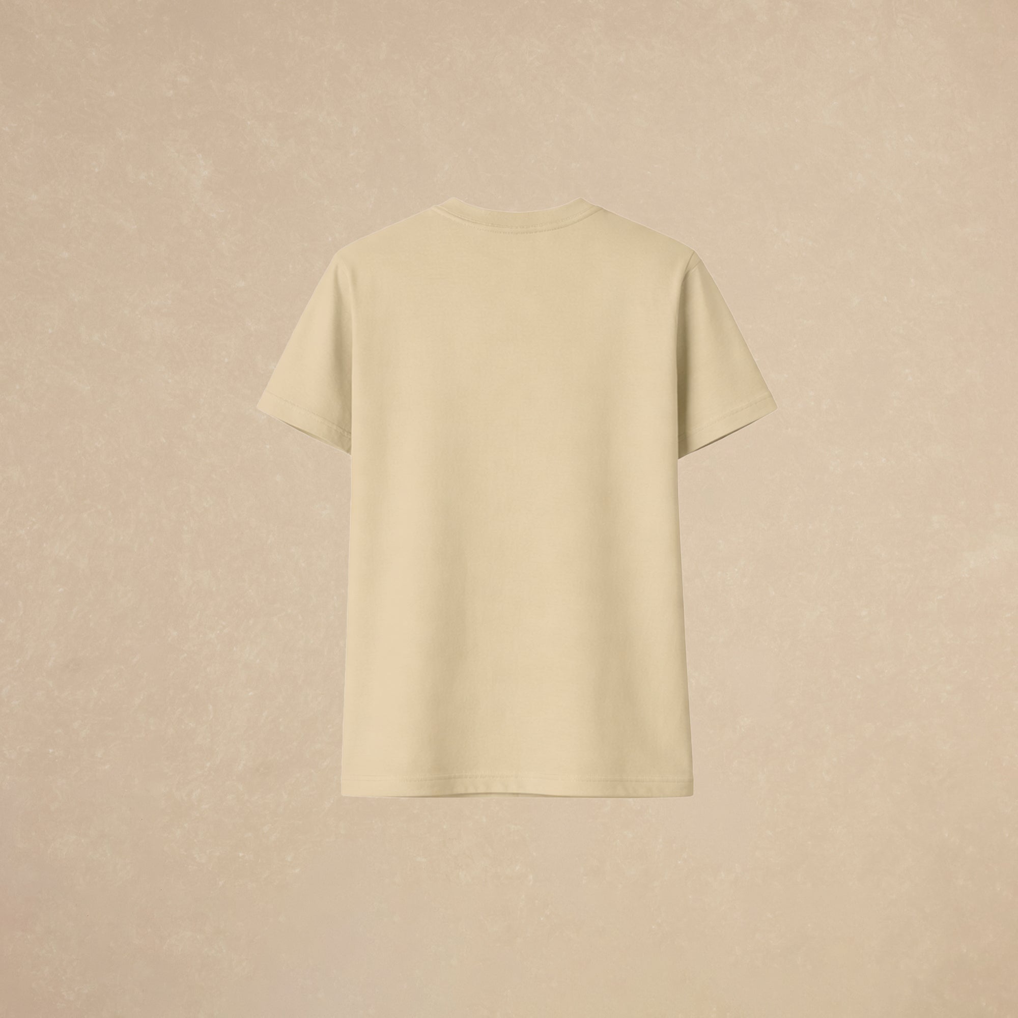 -Description: Premium beige t-shirt with a soft, stretchy fabric that adapts to the body in a modular way. We chose a fabric with a high recycled polyester content because it withstands the test of time better: it maintains its shape, color, and softness even after multiple washes. This t-shirt is ideal for those looking for a versatile garment that can be worn to a casual event or a yoga class without sacrificing elegance. It also contains a high proportion of quality cotton, making it even more comfortable against the skin. Global Recycled Standard ( GRS ) certification that helps reduce carbon footprint and waste.